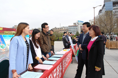 4月22日上午,我院组织6名志愿者参加了张掖市国土资源局在张掖市中心广场举办的第47个地球日宣传活动。 今年世界地球日的主题为“节约集约利用资源,倡导绿色简约生活”,呼吁全社会节约集约利用资源,倡导绿色简约生活方式。为了搞好这次地球日的宣传,我院团委高度重视,紧密结合活动主题,提前精心设计印制了宣传横幅和政策宣传展板等宣传资料。 在宣传点现场, 我院志愿者们悬挂横幅、宣传展板,现场向过往群众发放了宣传材料800余份,并主动耐心地向周边群众宣传国土资源政策和法规,倡导大家珍爱地球,从我做起,共同携手保护地球家园。现场共接受群众咨询70余次,受到了过往群众的好评。 通过“世界地球日”宣传活动,提高了群众的国土认识,增强了群众的法律法规意识,实现“世界地球日”宣传深入人心的目的。
