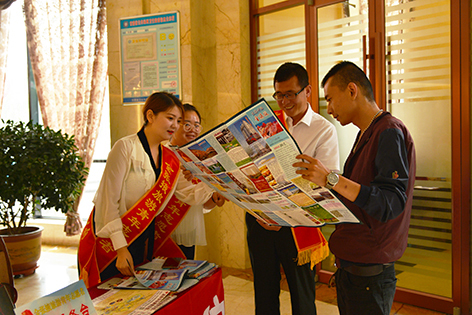 为进一步宣传推介我市丰富独特的旅游资源,不断扩大金张掖旅游的知名度、美誉度和影响力,按照张掖市团委的统一安排,6月2-3日,我院组织5名青年职工在张掖鼎合国际大酒店开展了“金张掖旅游青年志愿者”定点宣传服务活动。此项活动已开展数年,我院每年都积极组织青年干部职工参加。本次活动,我院志愿者先后发放了《张掖甘州指南》、《张掖旅游地图》、《金张掖旅游景点指南》等旅游宣传图册120余份,为本地市民及外来游客提供了旅游景点咨询、旅游道路指引、民俗文化介绍、环保政策宣传等便民服务。我院志愿者主动热情的接待和规范的服务得到了社会各界和广大游客的一致好评,展示了我院地质工作者的青春风采,同时为促进全市旅游产业健康快速发展贡献了力量。