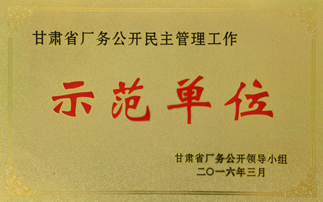 | 我院荣获“甘肃省厂务公开民主管理示范单位”荣誉称号 |