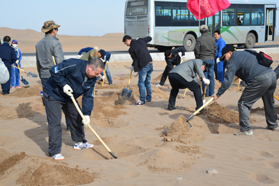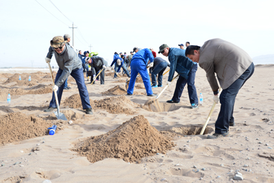 又是一年春光好,植树造林正当时。按照张掖市统一安排, 4月8日 ,我院近30余名干部职工来到张掖市甘州区现代畜牧产业园植树区,参加2016年春季义务植树活动,用实际行动为城市增绿添彩。在植树现场工作人员的指导下,大家拿上工具,你追我赶,各尽其责,挥洒着汗水,保质保量地完成植树任务,植树现场充满了欢声笑语,一个个忙碌的身影,形成了一道美丽的风景线。此次义务植树活动以“全民尽责植树播绿、携手共建美丽张掖”为主题,从 4月6日 开始,为期11天。为确保植树活动顺利开展,院团委对2016年春季义务植树活动进行了安排部署,要求青年职工要切实认识到造林植树、关爱自然是我们地勘人义不容辞的社会责任,积极参与活动,认真履行职责。