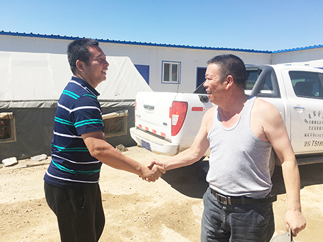 慰问暖人心,祝福传深情。2018年7月4日至9日,省地勘局副局长兼张掖矿产勘查院党委书记、院长杨进,带领副院长、工会主席一行11人,赶赴我院矿调项目、扫子山项目和工勘公司机台等野外一线施工现场慰问野外一线职工。 在玉门矿调项目驻地,杨进首先对项目组住房条件、生活条件进行了现场查看,并与职工亲切交谈,询问他们工作和生活情况,他说我们在搞生产的同时还要提高居住条件和生活条件,你们做得很好,房间干净整洁,伙食丰富可口。随后杨进看望了驻地附近兄弟单位,为他们送去了慰问品,邀请他们一起互动表演。 在扫子山项目驻地,杨进一行在听取了项目负责的汇报后,对项目组的工作给予了高度评价。他要求负责人在认真干好业务工作的同时一定要将安全工作放在首位,做好夏季防暑、防洪、防雷击等工作,时刻警钟长鸣,事事安全先行。 长流水金矿是我院与金徽矿业公司合作勘查开发的多金属矿。在我院工勘公司机台,杨进在了解了今年钻探进度和找矿成果后表示,任何时候地质找矿都是我们的工作中心和重心,我们一定要练好看家本领,加强学习,善于总结,不断提高业务水平,为地勘事业和地勘经济的发展再立新功。 每到一处,杨进都对大家进行慰问,对大家的辛勤付出表示诚挚的敬意和感谢,向大家道声辛苦了。每到一处,慰问组都精心准备小节目与大家互动,慰问表演给炎热的戈壁滩送去了一丝清凉,使野外职工深刻感受到了局、院党委对野外一线职工的关心和关爱,鼓舞了大家的干劲和士气。