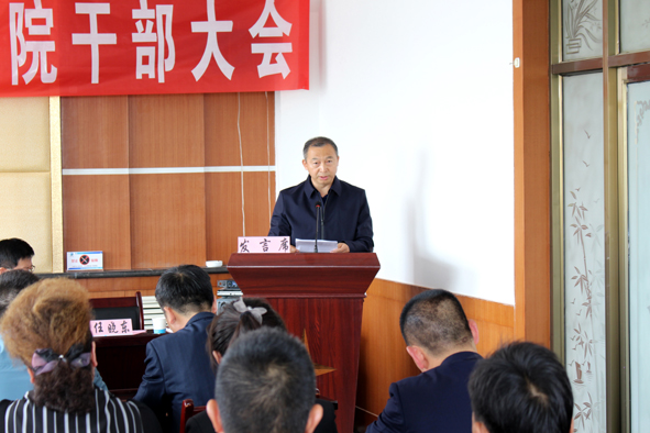 2019年5月16日,我院召开全院干部大会。甘肃省地勘局局长、党委书记范本彦出席会议并讲话,副局长陈建国主持会议,副局长杨进出席会议,局办公室主任汪海峰参加了会议,局人事处负责人崔永强宣读了局党委的任免决定,新任院长任晓东、新任党委书记张志诚作表态发言。 范本彦局长在讲话中指出,杨进同志在担任张掖院院长、党委书记5年半的时间里,带领班子与广大职工一道,全面履行局党委赋予的职责,以强烈的责任感克服了矿业经济下滑、环保政策趋紧的不利因素,通过不懈努力带领张掖院干部职工,抢抓机遇在地质勘查、水工环测、钻探施工、实验测试、基地建设等领域连续取得突破,取得不俗成绩,局党委是充分肯定的。对任晓东同志在兰州院工作期间带领全院干部职工,坚持“大地质”发展思路,积极开拓市场,实现实验测试、水工环测等方面的突破,使兰州院地质经济发展持续保持良好的发展态势给予充分肯定。对张志诚同志在张掖院兢兢业业、认真负责、敢于碰硬的工作作风给予了认可和肯定,对王涛同志的情况做了简要介绍。 局长在讲话中对以任晓东同志为班长的新一届张掖院领导班子提出了加强理论学习、提高政治站位、强化责任担当、不断提升素质、带头转变作风等五点要求,希望大家要以实际行动贯彻好、落实好局党委的决定,以更加奋发有为的工作状态进一步强化市场经济、咬定目标、居安思危、谋划发展,全力以赴抓好各项工作的落实,把张掖院的各项工作推向一个新高度,为加快全局地勘事业发展做出张掖院应有的、新的、更大的贡献! 院新一届班子成员、中层干部及职工代表70余人参加了会议。