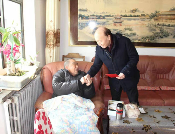 春节将至,岁寒情深。1月14日,局党委书记、局长范本彦,二级巡视员、局办公室主任汪海峰,局工会主席刘凤荣在院长任晓东、党委书记张志诚的陪同下,走访慰问了部分离退休老干部和困难职工,为他们送去了局、院党委的关怀和新春祝福。 “我们来给您拜年啦,提前祝您节日快乐!” “地勘事业的发展离不开你们打下的坚实基础,感谢你们!”……范本彦与离退休老干部陈廷模、周之元亲切交谈、嘘寒问暖,在悉心了解了老同志们的生活情况、身体状况后,他叮嘱老同志要保重身体,一如既往地关心关注张掖院的改革发展,为张掖院的各项事业发展继续出谋划策、当好参谋、发光发热。 在困难退休职工董良祥家,在详细询问了他的身体、生活情况后,范本彦鼓励他要树立战胜疾病、克服困难的信心,要以积极的心态面对生活,并祝他早日康复。 范本彦表示,地勘局及各院一直高度关心关注离退休老干部及困难职工的生活,每年都抽出专项资金慰问和帮助老同志,这些老同志曾经为全局地勘事业发展做出了重要贡献,我们不会忘记他们,局院也将尽最大努力给予帮助,与他携手共度难关。 “看着地勘事业发展日新月异,我们打心底里高兴!”接受慰问的老同志们对局、院党委如亲人般的关怀和帮助深表感激,他们纷纷表示,将继续发挥余热,关心、关注单位的发展,也坚信在局党委的带领下张掖院的事业会越来越好。