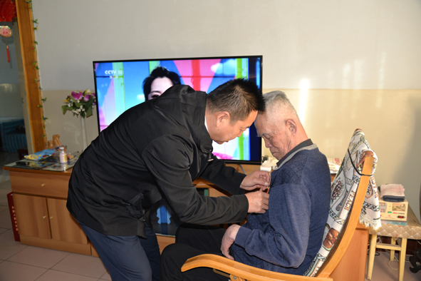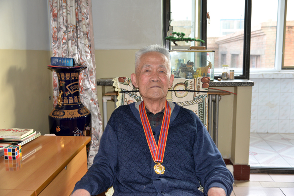 11月2日下午,甘肃省地勘局副局长李伟来我院走访慰问参加过抗美援朝战争的老战士陈庭模,并为他颁发“中国人民志愿军抗美援朝出国作战70周年纪念章”,院长任晓东、党委书记张志诚陪同慰问,把局党委和院党委的关怀带给了老战士,并向他致以崇高的敬意和亲切的问候。 陈庭模同志已经九十高龄了,在朝作战期间,曾多次立功受奖。现如今,尽管老人的记忆逐渐模糊,也开始认不清家人,但是当李伟亲手为他戴上承载着无上荣光的纪念章时,老人却湿了眼,他捧着金闪闪、沉甸甸的纪念章,激动地表达了对党和人民的感谢之意。 这枚纪念章,铭记着历史,昭示着未来,是胜利的凝聚,是光荣的象征。 李伟表示,我们要以榜样为动力,汲取精神养分,把爱国主义精神和革命英雄主义精神运用到工作实践中。他说,我们不能忘了陈庭模同志对党和国家做出的贡献,也不能忘了他对张掖院地勘事业的呕心沥血。他要求,有关部门要落实落细各项政策,关心好、照顾好志愿军老战士的日常生活,为他安度晚年提供良好条件。