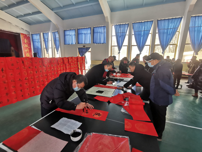 回首过去的一年,我们携手并肩用汗水浇铸了荣耀;回首过去的一年,我们团结奋进用智慧创造了精彩。1月11日,辛苦了一年的张掖院人相约礼堂,共同分享这一年的收获,互相传递新一年的祝福!为深入学习宣传贯彻党的十九届六中全会精神,大力弘扬中华优秀传统文化,丰富广大职工精神文化生活,在新春佳节即将来临之际,我院工会举办了迎新春送万福进万家书法公益活动。 天气虽然寒冷,但活动现场依然人头攒动,每个人脸上都洋溢着幸福的笑容,在职和离退休职工书法爱好者个个热情高涨,一副副充满新春祝福和对美好生活向往的大红春联,一挥而就,跃然纸上。工会主席陈进平也为大家送去了新春的祝福,他说:“大家的春联不仅字写的漂亮,而且内容吉祥,手写的春联比印刷的更有年味,更有意义,更能感受春联和书法的魅力,更能弘扬中国特色传统文化。 此次现场共书写春联100副,福字100副,一副副平安和谐、吉祥如意的春联,为即将来临的春节增添了浓浓的喜庆氛围,也将暖暖的新春祝福送到了一线职工和群众心坎上。