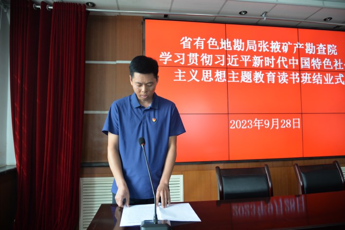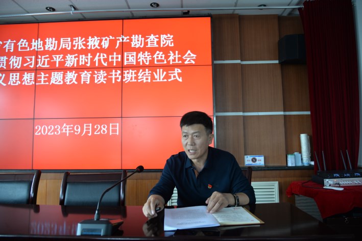 9月28日,我院学习贯彻习近平新时代中国特色社会主义思想主题教育读书班举行结业式。党委书记张志诚主持仪式并讲话。 结业式上,各位学员现场针对7天所学内容结合工作实际进行了交流研讨。张志诚在听取大家发言后指出,院党委主题教育读书班抓住在工作“热运行”中进行“冷思考”的宝贵时机,组织集体学习和交流研讨12次,开展红色教育1次,专题辅导报告1次,引导党员干部干什么就重点学什么、缺什么就重点补什么,努力查找差距不足、找准破题思路,提升履职尽责能力,增强敢为善为底气,锻造适应新形势新任务的过硬本领。读书班全体成员拿出“挤”和“钻”的精神,认真读原著、学原文、悟原理,全面学习领会习近平新时代中国特色社会主义思想,不断筑牢信仰之基、补足精神之钙、把稳思想之舵,推动我院主题教育取得了阶段性成效。 张志诚强调,此次读书班虽然结业,但主题教育等于才刚刚起步,学习习近平新时代中国特色社会主义思想永远不能止步。一要坚持以学铸魂,修好终身课题。按照既定部署,深耕细读、求真求实,坚决做到“真学、真懂、真信、真用”;坚持联系工作实际,把全面学习和重点学习结合起来,统筹安排好终身课、必修课、选修课,不断提高政治站位和理论素养。二要坚持理论联系实际,走好群众路线。强化成果运用,不断梳理、提炼、总结好的经验做法,积极选树正面典型。三要坚持学以致用,推动高质量发展。从党的科学理论中明方向、学方法、悟规律、增智慧,紧密结合实际破解发展难题。四要坚持问题导向,深入检视整改。坚持边学习、边对照、边检视、边整改,把发现问题、分析问题和解决问题贯穿主题教育始终,把检视整改作为检验主题教育成效的重要标尺。五要坚持常态长效,巩固教育成果。坚持“当下改”与“长久立”相结合,坚持联动共促,在实践中持续完善制度机制建设,把建章立制同理论学习、调查研究、推动发展、检视整改有机贯通、一体推进,切实把主题教育成果转化为推进我院经济高质量发展的强大动力。 杨锋、岳强、梁顺磊三名学员代表作了书面交流发言。大家纷纷表示,要把开展好这次主题教育作为坚定拥护“两个确立”、坚决做到“两个维护”的政治责任,牢牢把握“学思想、强党性、重实践、建新功”的总要求,学好用好习近平新时代中国特色社会主义思想,以学铸魂、以学增智、以学正风、以学促干,深入贯彻落实习近平总书记对甘肃重要讲话重要指示批示精神,为奋力谱写中国式现代化甘肃地勘新篇章贡献力量。