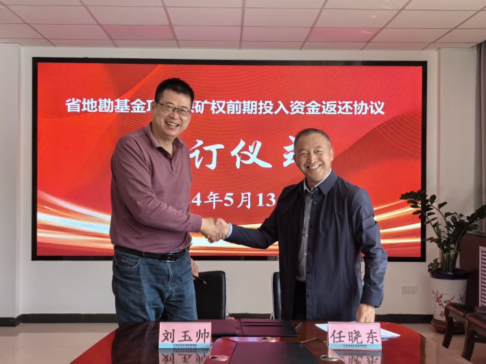 日前,由我院承担的《甘肃省敦煌市新井金多金属矿详查》地勘基金项目成功出让,出让总资金624.86万元。这是继今年我院成功出让“瓜州县906金矿”等6个地勘基金项目后,再一次获得重大找矿成果收益。“新井详查探矿权前期投入资金返还”签约仪式在兰州举行,我院院长任晓东,甘肃招金矿业有限公司总经理刘玉帅分别代表地勘单位和受让方签字。省有色地勘局矿业开发处副处长方春家主持签约仪式。截至目前,我院承担完成的地勘基金项目在省公共资源交易中心成功出让11个,成交总金额22770万元。