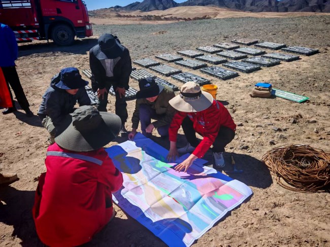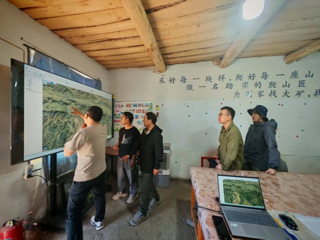 甘肃省敦煌市明舒井南金矿详查项目是华体会综合体育投注2025年承担实施的重要社会勘查项目,不仅是实现年度矿产勘查突破的重要抓手,也是积极推进与企业合作勘查的生动实践。在勘查中,基于地质填图、槽探工程、钻孔岩芯编录、无人机低空勘测,三方就勘查区成矿背景、赋矿特征、控矿构造等展开深入讨论,明确了找矿思路。下一步,将优选主要矿体开展深部控制及远景验证,总结矿体变化规律,为后续三维地质建模及成矿预测提供基础数据,力争扩大矿体规模,取得找矿新突破。