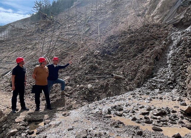 为切实保障施工项目安全、规范、高效推进,6月17日,副院长王涛一行对我院甘肃祁龙实业有限责任公司承建的“肃南县大河乡西大口、九個泉矿区矿山地质环境生态综合修复治理项目九個泉矿区白泉门生态修复治理工程”进行检查指导,并慰问野外一线职工。 该项目是我省首个高原冻土高位滑坡治理项目。凭借优质高效的施工表现,项目组先后获得省、市、县三级自然资源部门的表彰,赢得了各级领导与专家的高度认可。 在施工现场,检查组实地查看了工程进度、施工质量和安全防护措施的落实情况,并听取了项目负责人关于实施进展的汇报。检查组就施工中的重点难点问题,与相关负责人进行了深入分析交流,为后续施工提供了科学的指导意见。 王涛强调,野外项目工作环境复杂、风险较高,全体项目人员务必树牢安全意识和质量意识。一要始终把安全工作放在首位,严格落实各项安全管理制度,及时消除安全隐患;二要在保证安全的前提下,严格把控项目质量,确保项目按时、高质量完成;三要做好防暑降温工作,高温天气来袭,要合理安排作业、休息时间。 本次项目检查,系统梳理了项目存在的问题,进一步明晰了工作方向。项目部负责人表示,将在后续工作中严守安全底线与质量红线,科学统筹项目推进节奏,全力以赴争创优质项目成果,扎实推进项目按期高效收官。 肃南县自然资源局项目办主任罗英文、张掖院工程勘察设计中心主任朱洪涛陪同检查。