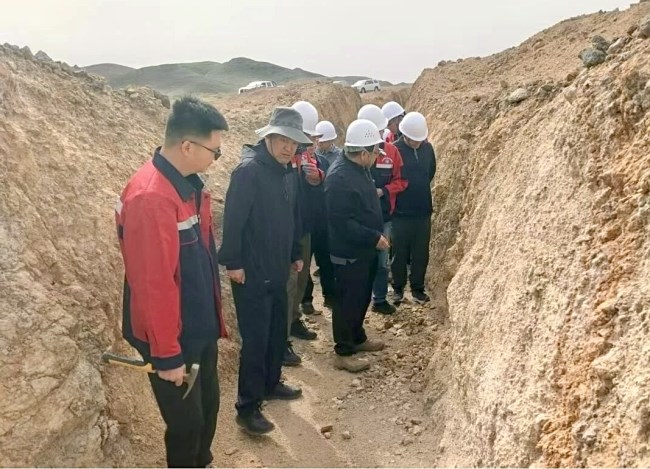 在张掖矿勘院两个项目部,陈建国一行听汇报、察现场、查岩芯,详细了解项目进展、阶段成果及下步思路,他充分肯定了张掖院“玉门综合项目部”在工作中认真贯彻落实局党委地质找矿“找什么、哪里找、怎么找”要求的具体做法,并高度评价了该项目部地勘文化建设成效。9月4日,陈建国一行到省有色地调院敦煌项目部,赴项目现场及驻地,细致检查钻探、槽探工程与见矿岩芯,听取地调中心及项目部关于项目布局、重点项目进展、安全生产等汇报,就岩芯特征、矿体赋存等技术问题深入调研,调研中,他充分肯定了有色地调院“敦煌项目部”在项目管理和团队建设方面的工作成效;同时强调,省有色地调院抢占先机,开展境外地质工作走在全局前列,要进一步发挥优势,在境外项目的谋划部署上取得新进展。