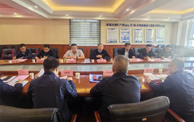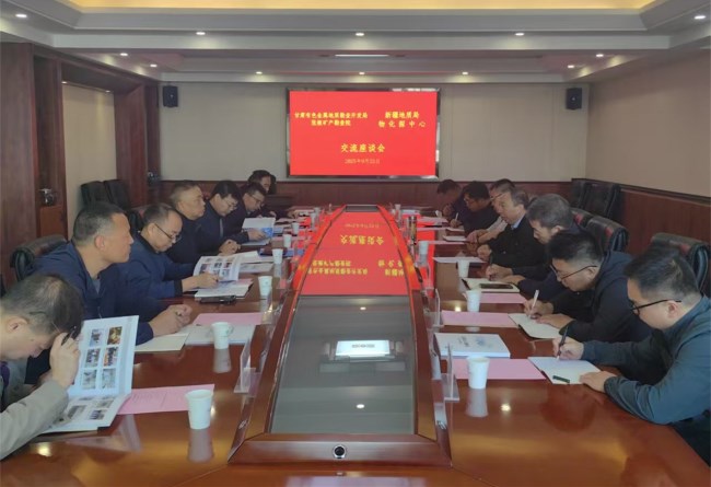 新疆物化探中心党委书记黄志荣代表中心全体干部职工对任晓东一行的到访表示热烈欢迎。他强调,双方作为地质勘查领域的重要力量,使命相通、责任相同,此次交流既是增进友谊的契机,更是推动资源共享、优势互补的重要举措。随后,新疆物化探中心党委副书记、主任屈栓柱详细介绍了中心的发展历程、组织架构、人才队伍建设成果及近年来的中心发展情况,重点分享了在物化探技术应用、地质找矿突破、项目管理模式等方面的实践经验,为双方后续技术交流提供了有益借鉴。 我院副院长陈生民、卫治国,新疆物化探中心副主任孔繁良、谢强及双方相关部门负责人就项目合作细节、技术难点解决方案、人才交流机制等议题展开深入研讨,现场气氛热烈,达成多项合作意向。